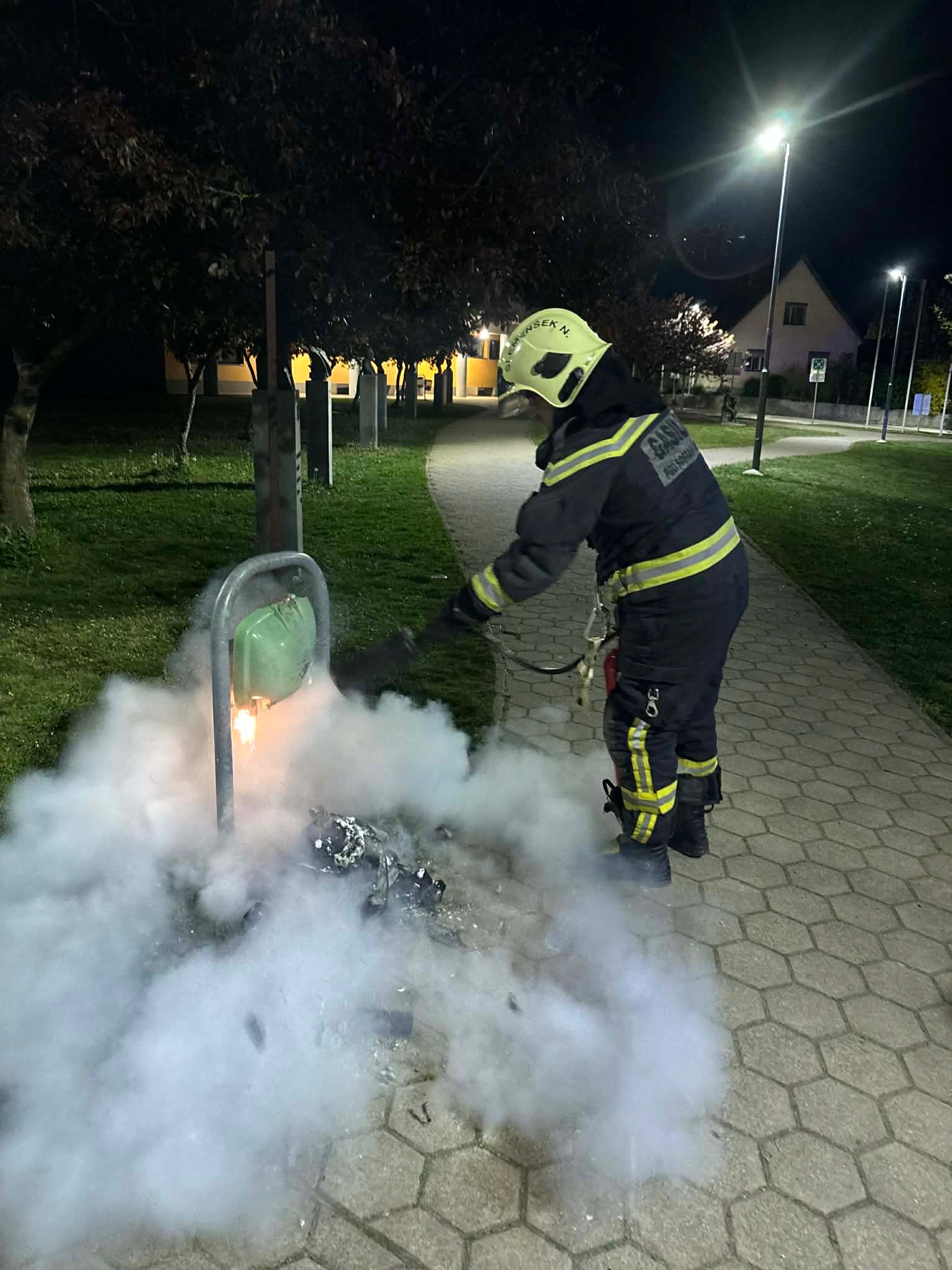 V soboto, 25. 4. 2026, smo bili ob 21.21 alarmirani na požar smetnjaka. Ob prihodu na kraj smo požar hitro pogasili z gasilnikom na ogljikov dioksid.